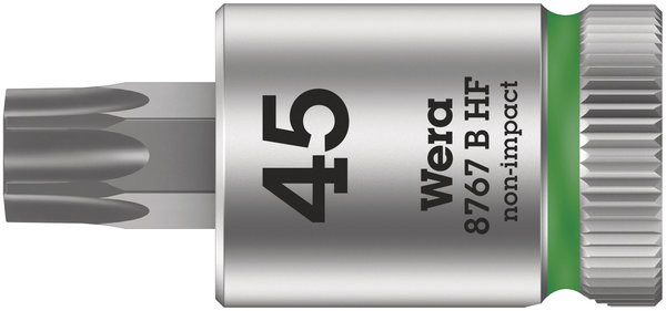 8767 B HF innensechsrund Zyklop Bitnuss mit 3/8"-Antrieb, mit Haltefunktion, TX 45 x 38,5 mmBit-Nuss mit 3/8" Antrieb und Haltefunktion für besonders komfortables Schrauben mit reduzierter Gefahr des Schraubenverlustes beim Zuführen zum Werkstück. Mit "Take it easy" Werkzeugfinder mit Farbkennzeichnung nach Größen - zum einfachen und schnellen Finden des benötigten Werkzeugs. 05003070001