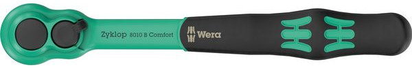 Zyklop Comfort Knarre mit Umschalthebel im unwiderstehlichen Wera Design, 3/8". Komfortable zweikomponentige Kunststoffummantelung. Schützt empfindliche Oberflächen. Schlanke Bauform zum Arbeiten auch in sehr engen Bauräumen. Aufgrund der Feinverzahnung mit 80 Zähnen wird ein niedriger Rückholwinkel von nur 4,5° ermöglicht. Mit Umschalthebel für einen bequemen Drehrichtungswechsel. Mit sicherer Nussverriegelungsfunktion durch Druckknopf.