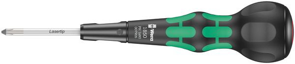 Schraubendreher mit Kraftform Serie 1800 Griff für Kreuzschlitzschrauben Phillips. Der Griff liegt hervorragend in der Hand. Die ballige Form ermöglicht die Übertragung hoher Drehmomente. Die weichen Griffzonen sorgen für eine griffige Haptik und verlustarme Kraftübertragung. Die harten Griffzonen erlauben eine hohe Kraftübertragung, auch wenn mit dem Handballen Druck ausgeübt wird. Die Finger-Griffmulden am oberen Ende des Griffs erleichtern feine Justier-Arbeiten beim Verschrauben. Durch den schmalen Übergang zwischen Griff und Klinge können auch schwer erreichbare und tiefliegende Schrauben in engen Bereichen gut erreicht werden. Der Abrollschutz am hinteren Griffende erschwert lästiges Wegrollen des Werkzeugs am Arbeitsplatz. Die Spitze von Wera Lasertip-Schraubendrehern wird mit Laserstrahlen mikroskopisch fein aufgeraut. Diese raue Oberfläche "beißt" sich förmlich im Schraubenkopf fest. Das unbeabsichtigte Herausrutschen aus der Schraube wird so verhindert.