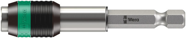 Rapidaptor Universalhalter für Bits mit 1/4"-Außensechskantantrieb nach DIN ISO 1173-C 6,3 und E 6,3 (ISO 1173). Der Rapidaptor erlaubt eine Aufnahme der Bits auch ohne Betätigung der Hülse. Die Entnahme des Bits geschieht durch einfaches Nach-vorn-Schieben - für blitzschnellen Bitwechsel, auch mit nur einer Hand. Der starke Dauermagnet hält die Bits bombenfest. 1/4"-Sechskant, passend für Schraubermaschinen mit Aufnahme nach DIN ISO 1173-F 6,3.