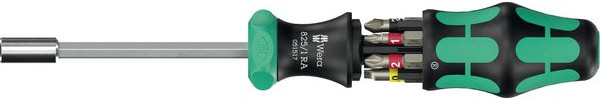 Kraftform Handhalter für 1/4" Bits. Die im Griff integrierte Ratsche mit Feinverzahnung sorgt für schnelles Arbeiten. Das Umschalten der Schraubrichtung ist intuitiv: Wird der Ringschalter nach rechts gedreht, wird nach rechts geschraubt, wird der Ringschalter nach links gedreht, wird nach links geschraubt. Für präzise Arbeiten kann die Ratschenmechanik mit der 0-Position deaktiviert werden. Inklusive 6 BiTorsion Bits für lange Lebensdauer, zähhart, für den universellen Einsatz; untergebracht in dem im Griff integrierten Bit-Magazin. Der starke Dauermagnet in der 1/4" Bitaufnahme sorgt für sicheren Sitz des Bits. Der 2-komponentige Kraftform Griff mit seiner Kombination aus Hart- und Weichzonen ermöglicht festes Zupacken und präzises Arbeiten.