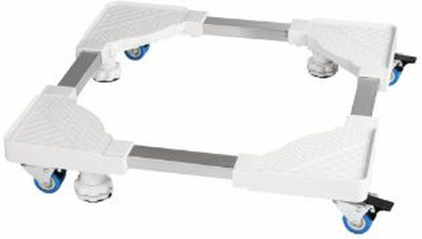 rollbarer Schwerlast-Unterbaurahmen, ideal als Umzugshelfer zum Transport von Waschmaschine, Trockner, Kühlschrank, Herd oder anderen Haushaltsgeräten, die flexible Auflagefläche ist durch ausziehbare Schienen von 50 x 50 cm auf eine Größe von bis zu 70 x 70 cm einstellbar; so kann der Transportroller universell für Waschmaschinen, Trockner, Gefrierschränke, Kühlschränke und andere Hausgeräte, Möbel, schwere Pflanzen oder Lager- und Transportboxen mit einem Gewicht von bis zu 150 kg verwendet werden, griffige Anti-Rutsch-Oberfläche und spezielle Versteifungen an den Ecken, das Untergestell schützt die Maschine vor Rückstauwasser aus dem Gully, Hochwasser bis 11 cm und Nässe am Boden zum Beispiel durch lockere Schläuche, absenkbare Bremsen an allen Rollen sorgen für optimalen Halt auch während des Schleudergangs etc.