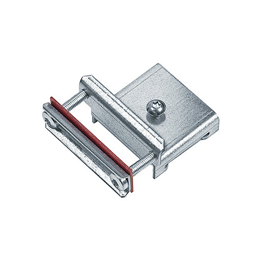 Zugentlastung aus Stahlblech verzinkt, mit integrierter Vorrichtung zum Klemmen der Einspeisekabel.
