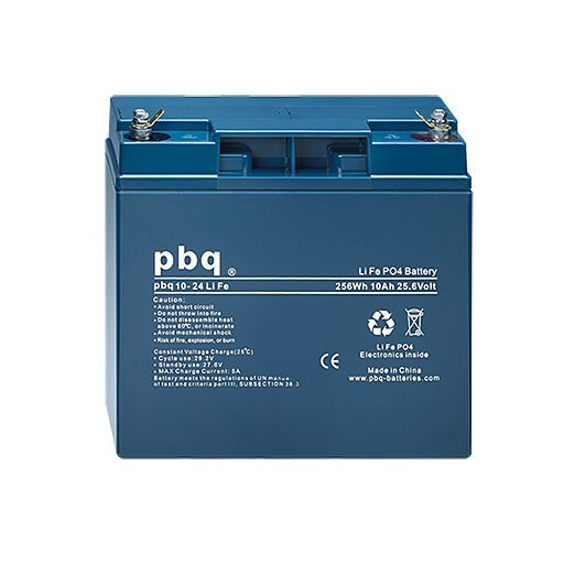 Geschlossene, wieder-aufladbare Lithium Eisen Phosphat Batterie. Abmessungen: 181 x 76 x 167 mm (L/B/H), Gewicht: 3,2 kg, Polanschluss: M5 Drehmoment 5-7 Nm mit Faston F2 Adapter Merkmale nBox ACCU LiFePO4 24V/10Ah -Batterie UN38.3 und CE zertifiziert - Zellen UL1642 & IEC62133 zertifiziert - UN3480, Versandsklasse 9 - über internes Batterie Management System geschützte Zellen - interner Zellenausgleich - ABS UL94-HB Gehäuse - Wartungsfrei - geringe Selbstentladung - kann in jeder Position verwendet oder gelagert werden - geringes Gewicht