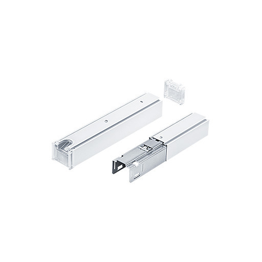 Einspeiseset L500 in weiß aus profiliertem Stahlblech für den elektrischen Anschluss des Lichtbandes. Länge des Einspeisesets optimiert für vollbestückte Lichtbänder mit Lichtbandleuchten. Steckbare Anschlußklemmen für 5 Netzleitungen, 2 x 2 Notlichtleitungen und 2 Steuerleitungen. Berührungsschutz für Stromleitprofil und Endkappen inkludiert. Abmessungen: 533 x 60 x 58 mm, Gewicht: 1,4 kg