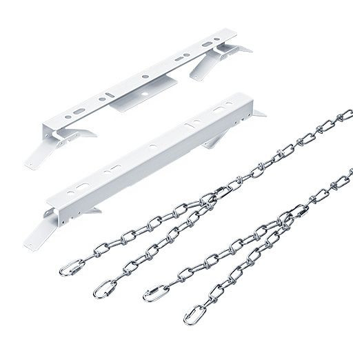 Montageset zur einfachen Kombination von zwei CRAFT II plus L in der XL-Größe. Die Lieferung besteht aus Schiene in weiß, Kette und Schrauben zur Befestigung. Die Leuchte kann von der Decke bis max. 1,2m und mit der Möglichkeit direkt an die Decke aufgehängt werden. Maximale Raumtemperatur begrenzt und Ballwurfsicher zertifiziert nur für Kette und Decke Direktmontage, überprüfen Sie bitte die Montageanleitung für weitere Informationen.