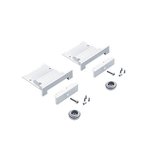 Endkappenset für den Technikkanal inkl. Kaschierblech in Farbe weiß (ähnlich RAL 9016) sowie Tüllen (je 2 Stück) inkl. Schrauben zur Befestigung der Abdeckung und Gewährleistung der BWS (Ballwurfsicherheit).