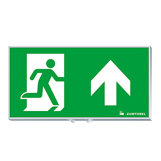 Sicherheitszeichen für PURESIGN 150 MSW/MRW ERI mit Aluminiumrahmen, silber (RAL 7035 ähnlich) pulverbeschichtet, zur werkzeuglosen Montage auf das PURESIGN 150 ERI Gehäuse. ERI Funktion mit 2 zusätzlichen high power LEDs und 360° verstellbaren asymmetrischen Linsen zur Fluchtwegbeleuchtung, rastend in 90° Positionen. Gleichmäßige Hinterleuchtung des Piktogramms durch integrierte low power LEDs mit einer Leuchtdichte > 500 cd/m² im weißen Bereich, Piktogramm per Digitaldruck auf die PC (Polycarbonat)- Scheibe aufgebracht, Sicherheitszeichen gemäß ISO 7010: 1seitig, Symbol: Rettungsweg/Notausgang. Richtungspfeil nach oben, Erkennungsweite gemäß EN 1838: 30 m, Abmessung: 310 x 20 x 160 mm, Gewicht: 0,72 kg.