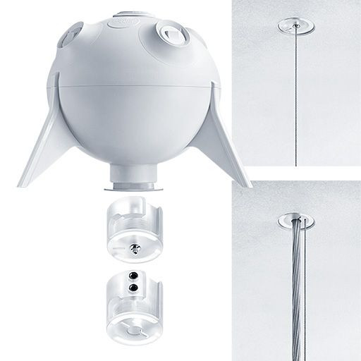 Montageset DOT28 für ästhetischen, verspachtelten Betondeckenanschluss der Pendelleuchten mit 2 Abhängepunkten. Einfach und beinahe werkzeuglos lässt sich die Betonkapsel auf der Schalung platzieren. Durch den Abstand des Kapselhalses zur Vorderkante Beton bleibt die Betonkapsel unsichtbar. Was sichtbar bleibt, ist ein abgefastes Loch mit Bajonett-Verriegelung. Mit einem flächenbündigen und sehr reduzierten Baldachin Bajonett (Durchmesser 28 mm) wird die Leuchte an die Decke angeschlossen. Nicht kompatibel mit Zumtobel-Abhängungsseilen Durchmesser 1,2mm. Montageset besteht aus 2 Stk. Betonkapseln mit Schalungspfropfen, 1 Stk. Spachtelscheibe, 1 Stk. Baldachin-Bajonett zur Abhängung und Einspeisung (transparent) und 1 Stk. Baldachin-Bajonett mit Reutlinger (transparent). Maximale Zugbelastung pro Abhängepunkt: 10 kg (=gesamt 20kg).