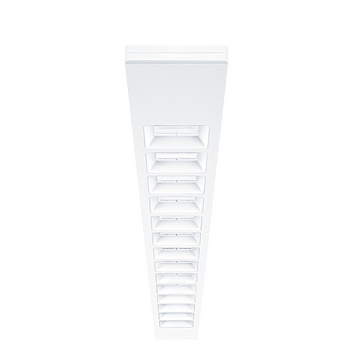 Schlanke LED Anbauleuchte mit prismatischem Lichtkammersystem mit integriertem LED Treiber. Leuchten Leistung: 23,5 W LED, DALI steuerbare Leuchte (DALI only) mit LED-Konverter. LED-Lebensdauer 50000 h bis zu einem Lichtstromrückgang auf 90 % des Anfangswertes. Farborttoleranz (initial MacAdam): 3. Leuchten Lichtstrom: 3390 lm, Leuchten Lichtausbeute: 144 lm/W.Farbwiedergabe Ra > 80, Farbtemperatur 4000 K. Blendbegrenzung UGR<19. Lichtlenkung und Entblendung des Direktlichtanteils über Lichtkammersystem mit prismatischer Lichtaustrittsfläche in weiß, matt. Geschlossenes optisches System mit Berührungsschutz der LED-Module gegen Beschädigung durch elektrostatische Entladung, Leuchtengehäuse aus Aluminiumstrangpressprofil, pulverbeschichtet in weiß mit einer sichtbaren Seitenhöhe von 27mm, Aluminium-Druckguss-Stirnteile in Leuchtenfarbe weiß, beschichtet. Rückseitige Abdeckung aus Stahlblech, weiß pulverbeschichtet. Leuchte halogenfrei verdrahtet. Leuchtenmontage mittels Zubehör auch als Lichtband möglich. Abmessungen: 1580 x 128 x 39 mm. Gewicht: 4,5 kg.