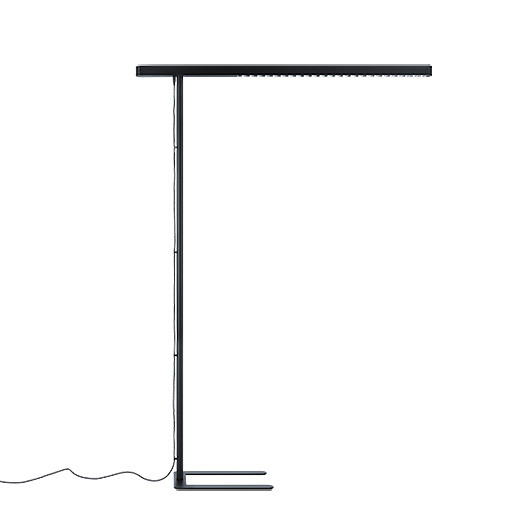 LED-Stehleuchte in schwarz matt, für Einzel-Doppelarbeitsplatz mit seperater Steuerung des Direkt-/Indirektlichts Reduziertes, zeitloses Design durch Verwendung einfacher geometrischer Grundformen. Lichtkopf mit Rasteroptik des Direktanteils für entblendete Lichtverteilung gemäß EN 12464-1, mit UGR < 19 und L65 < 3000 cd/m² Leuchtenkopf aus Aluminium, Säule und Fußplatte aus Stahl für hohe Sicherheit. Die gesamte Leuchte ist werkzeuglos montierbar Bedienung der Leuchte mittels Fernbedienung pulverbeschichtet,schwarz matt (ähnlich RAL 9005) Farbwiedergabe Ra > 80, Farbtemperatur 4000 K Abstrahlcharakteristik direkt-indirekt im Verhältnis 18:82 Farborttoleranz (initial MacAdam): 3, Leuchten Lichtstrom: 14000 lm, Leuchten Leistung: 99,6 W Höhe der Leuchte: 2043, Dimension Leuchtenkopf 1466mm x 48mm x 44mm Kabel seperat zu bestellen