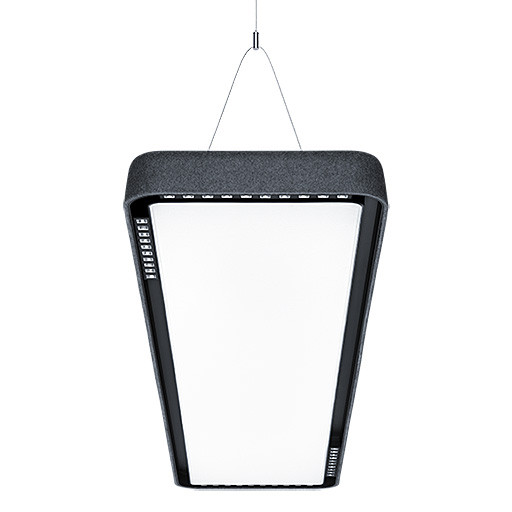 Akustisch wirksame LED Pendelleuchte mit 3 Lichtanteilen: Gerichtetes Mikroreflektor-Direktlicht, flächigem Direkt- und Indirektlicht. DALI steuerbare Leuchte (DALI only) mit separat steuerbaren Lichtanteilen, Farbwiedergabe Ra > 80, Farbtemperatur 4000 K, UGR<16 L<1500cd/m² bei 65° für Bildschirmanwendungen. Farbtoleranz (initial MacAdam): 3, Leuchten Lichtstrom: 8670 lm, Leuchten Lichtausbeute: 104 lm/W, Das flächige Direklicht ist mit einem opalen Gewebe bespannt. Die Formfließhaube dient sowohl als Stabilisator als auch Schallabsorber. Sie besteht aus 60 % anthrazitfarbenem PET-Rezyklat, umhüllt mit einer gefärbten Schicht: , Transparentes 3m Einspeisekabel vorinstalliert. Abmessungen: 1700 x 348 x 65 mm Gewicht: 7,8 kg