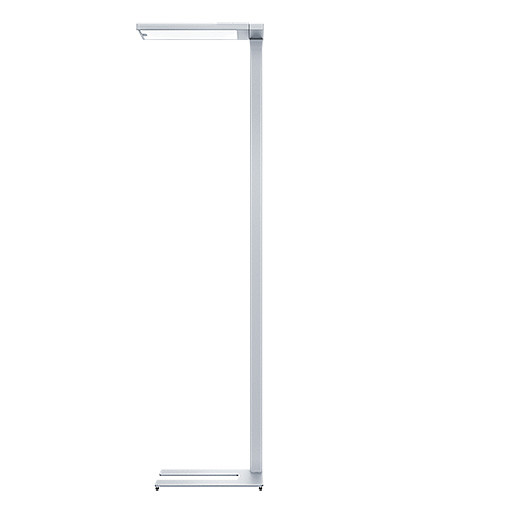 Zeitlos elegante Stehleuchte zur flexiblen Arbeitsplatzbeleuchtung von bis zu vier Arbeitsplätzen mit individueller Lichtsteuerung für separate Steuerung des Direkt- / Indirektlichts mittel separater Fernbedienung oder Appsteuerung. LED-Konverter integriert im Leuchtenkopf, Leuchte mit SensControl - intelligente Anwesenheitssteuerung und Helligkeitssensorik zur maximalen Energieoptimierung, inkl. jeweils einem kombinierten Tageslicht- und Präsenzsensors pro Leuchtenkopf, silber,Stehleuchte bodenstehen mit einer Leuchtensäule in 1,96m, nivellierbare Fußplatte in U-Form zur rechtsseitigen Positionierung am Arbeitsplatz, 2,5 m lange Anschlussleitung Durchmesser 1,5 mm² mit Schutzkontaktstecker (Schuko) lt. DIN 49441 Form R2, 3000 Kelvin bei Farbwiedergabe Ra > 90, Gewicht: 15,44 kg