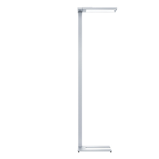 Zeitlos elegante Stehleuchte zur Arbeitsplatzbeleuchtung mit individueller Lichtsteuerung für separate Steuerung des Direkt- / Indirektlichts mittel Fernbedienung. LED-Konverter integriert im Leuchtenkopf, Leuchte mit SensControl - intelligente Anwesenheitssteuerung und Helligkeitssensorik zur maximalen Energieoptimierung. Leuchte mit einem Leuchtenkopf zur linksseitigen Positionierung am Arbeitsplatz, Leuchten Lichtleistung 9950, davon rund 20% Direktlicht und 80% doppelt asymmetrisch abstrahlendes Indirektlicht. silber, Stehleuchte bodenstehen mit einer Leuchtensäule in 1,96m Schmale, nivellierbare Fußplatte in U-Form zur linksseitigen Positionierung am Arbeitsplatz, 2,5 m lange Anschlussleitung Durchmesser 1,5 mm² mit Schutzkontaktstecker (Schuko) lt. DIN 49441 Form R2, 4000 Kelvin bei Farbwiedergabe Ra > 90, Gewicht: 15,39 kg