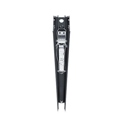 Kanal für LED-Lichtliniezur Pendelmontage mit LED-Konverter, DALI steuerbare Leuchte, LED-Lebensdauer 100000 h bis zu einem Lichtstromrückgang auf 95 % des Anfangswertes. Farborttoleranz (initial MacAdam): 3. Farbwiedergabe Ra > 90, Farbtemperatur 4000 K. Kanal aus Aluminium, aus Aluminium, schwarz (ähnlich RAL 9005), pulverbeschichtet. Abmessungen: 2500 x 76 x 92 mm. Gewicht: 6,3 kg. Schutzart: IP20. Schlagfestigkeit: IK03. SlotlightInfinity II setzt sich aus einem Kanal, LED-Balken, Abdeckung und Accessoires zusammen, welche separat konfiguriert und bestellt werden müssen. Dieses Produkt ist ein Bestandteil der gesamten Konfiguration.