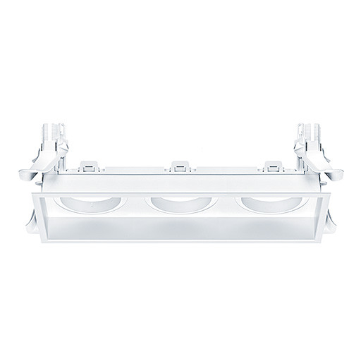 Installationsrahmen (3-fach) mit Abdeckrahmen, dient als Plattform für flexible Kombination der LED-Lichtmodule DIAMO MD, der Rahmen ermöglicht den eingebauten Lichtmodulen die Funktionalität: drehbar (180°) und kippbar (2x20°, SP/FL/VFL), einfache werkzeuglose Montage der LED-Lichtmodule in den Installationsrahmen mittels CLIX-Technik, Rahmen aus Polycarbonat (PC), weiß, werkzeuglose Deckenmontage des Installationsrahmens mittles Haltefedern für Deckenstärken 1-25 mm, Deckenausschnitt: 290x100mm, Einbautiefe der LED-Akzentlichtmodule: 150 mm, Außenabmessungen des Rahmens: 300x111x77 mm, Gewicht: 0,19 kg Hinweis: LED-Lichtmodule DIAMO MD sind separat zu bestellen!