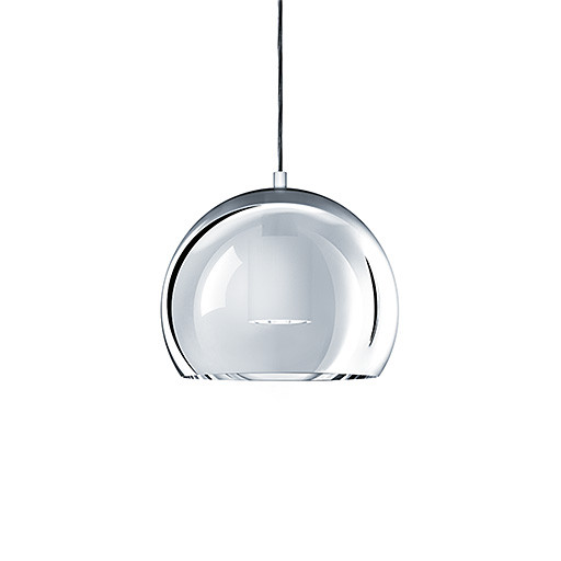 Kugelförmige Pendelleuchte, Kugel aus Polycarbonat (PC) mit teiltransparenter Verspiegelung in chromfarben, Lichtwirkung: teiltransparente Verspiegelung erzeugt Plastizität und Tiefe, Bestückung: LED750-930, Leuchte bzw. Strahler mit FLOOD-Abstrahlcharakteristik (27 °), Farbwiedergabe Ra > 90, Farbtemperatur 3000 K (warm weiß), Farborttoleranz (initial MacAdam): 3, Leuchten Lichtstrom: 750 lm, Leuchten Lichtausbeute: 83 lm/W, Lebensdauer: 50000h bei 80% Lichtstrom, UV- und IR-freies Licht, modulare, hochwertige optische Einheit aus Reflektor und LED-Lichtkammer, passives Wärmemanagement durch optimierten Aufbau des Leuchtengehäuses, Reflektor aus hochwertigem, UV-beständigem Polycarbonat (PC), aluminiumbesputtert, hochglänzend, irisierungsfrei, elektronisches Betriebsgerät , integriert im Deckenbaldachin, Deckenbaldachin aus Polycarbonat (PC), chromfarben matt, Pendelleitung transparent, Anschluss: 3-polige Steckverbindungsklemme, Leuchten Leistung: 9 W, Netzspannung: 220-240V/ 50/60Hz, Schutzklasse: I, Abmessungen: Durchmesser 250 mm, Gesamtlänge ca. 3000mm, Gewicht: 1,2 kg