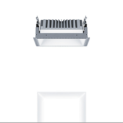 LED Decken-Einbauleuchte ohne Abdeckrahmen "trimless", Einsatz bei limitiertem Platz in der Decke: Einbautiefe nur 100mm, LED Leuchte "tunableWhite", mit dynamischer Farbtemperaturveränderung bei gleichbleibendem Leuchtenlichtstrom über DALI-Signal (DT8 Standard) einstellbar, symmetrisch, breitstrahlende Lichtverteilung mit höchster Leuchteneffizienz und optimaler Lichttechnik, Bestückung: LED1800-927-65, Farbwiedergabe Ra > 90, Farbtemperatur (tunable) 2700-6500 K (warmweiß-neutralweiß-tageslichtlichtweiß), Farborttoleranz (initial MacAdam): 3, Leuchten Leistung: 23 W, Leuchten Lichtstrom: 2100 lm, Leuchten Lichtausbeute: 91 lm/W, Lebensdauer: 50000h bei 80% Lichtstrom, mit separater Vorschaltgeräte-Einheit DALI steuerbare Leuchte (DALI only), Dimmbereich: 1-100%, inklusive "Fade-to Zero", hochwertige Reflektoreinheit über Verrastung an modulare LED Lichtkammer befestigt, hocheffiziente LED Lichtkammer integriert im optimierten, passiven Wärmemanagement aus Aluminiumdruckguss, Reflektor:glatt, weiß lackiert, Reflektor aus hochwertigem, UV-beständigem Polycarbonat (PC), werkzeuglose Schnellmontage der Leuchteneinheit über EASY-CLICK-Verschluss, IP44_IP20, Leuchte halogenfrei verdrahtet, Anschluss: 5-polige Steckverbindungsklemme, Durchschleifen möglich, Netzspannung: 220-240 V / 0/50/60 Hz, Zentralbatterietauglich 220V DC , Montage: werkzeuglose Schnellmontage mittels Haltefedern für Deckenstärken von 1-25mm, Deckenausschnitt: 190x190mm, Einbautiefe: 100mm, Gewicht: 1,24 kg Hinweis: Aufnahmerahmen (Planarrahmen) zum deckenbündigen Einbau der Leuchte ist separat zu bestellen (siehe Zubehör), für Office Anwendungen gemäß EN12464 (UGR<19, Reflektortyp aluminiumbesputtert) ist ein zusätzlicher Entblendungsrahmen separat zu bestellen