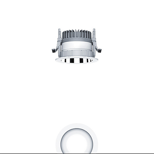 LED Decken-Einbauleuchte (Komplettleuchte) R100, mit symmetrisch, breitstrahlender Lichtverteilung (64 °) mit höchster Leuchteneffizienz und optimaler Downlight Lichttechnik, hohe Nachhaltigkeit aufgrund durchgängigen, maximal- modularen Aufbau und austauschbaren Komponenten. Austauschbares LED Modul, Farbwiedergabe Ra > 90 (R9>50), Farbtemperatur 4000 K, Farborttoleranz (initial MacAdam): 2, Leuchten Leistung: 8,2 W, Leuchten Lichtstrom: 1050 lm, Leuchten Lichtausbeute: 128 lm/W, Mittlere Bemessungslebensdauer: L80 100000 h bei 25 °C + L90 50000 h bei 25 °C, mit separaten, steckbaren LED-Konverter, DALI steuerbare Leuchte (DALI only), mit DC-Funktion, einstellbar 1-100 %, Notstromlevel auf 15% voreingestellt, NFC konfigurierbar, SwitchDIM-kompatibel, hochwertige Reflektoreinheit über Bajonettverschluss an modularer LED-Lichtkammer arretiert, hocheffiziente LED Lichtkammer integriert im optimierten, passiven Wärmemanagement aus recycelten Aluminiumdruckguss, Reflektor/Abdeckring aus hochwertigem, UV-beständigem Polycarbonat (PC), Reflektor: aluminiumbesputtert, hochglänzend, irisierungsfrei, Abdeckring: weiß, Material untere Abdeckung/Diffuser}, Einbauring aus Polycarbonat (PC), grau, Schutzart: IP54, Leuchte halogenfrei verdrahtet, Anschluss: 5-polige Steckverbindungsklemme, , Netzspannung: 220-240 V / 0/50/60 Hz, Zentralbatterietauglich 220-240V DC, , Montage: werkzeuglose Schnellmontage mittels Anti-Rutsch-Haltefedern für Deckenstärken von 1-40mm, werkzeuglose Schnellmontage der Leuchteneinheit mittels Bajonettverschluss, Deckenausschnitt: 100mm, Einbautiefe: 100mm bei einer Deckenstärke von 1-15mm, Einbautiefe: 110mm bei einer Deckenstärke von 1-25mm, Einbautiefe: 130mm bei einer Deckenstärke von 1-40mm, Gewicht: 0,45 kg Geringe Einbautiefe bei Einsatz mit limitiertem Platz in der Decke.