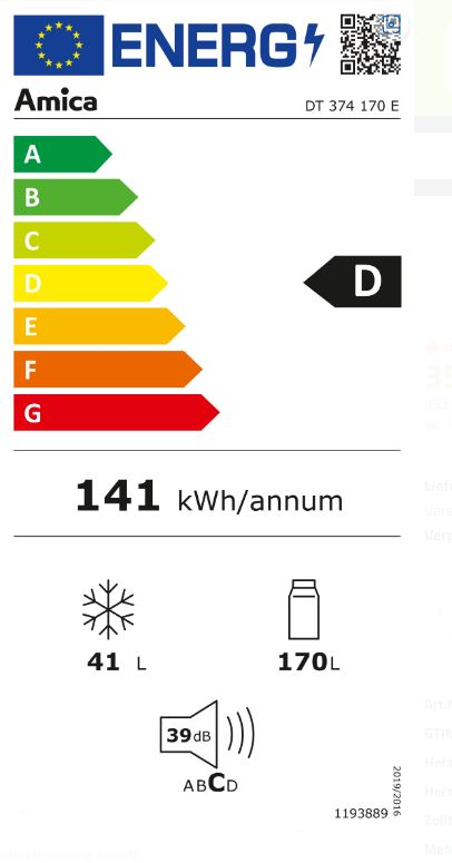 AMICA DT 374 170 E Kühl-/Gefrierkombination