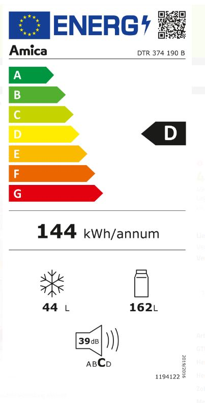 AMICA DTR 374 190 B Kühl-/Gefrierkombination