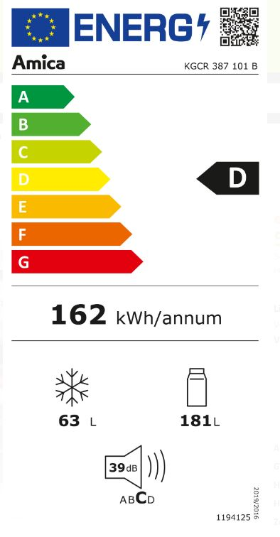 AMICA KGCL 387 150 W Kühlgefrierkombination