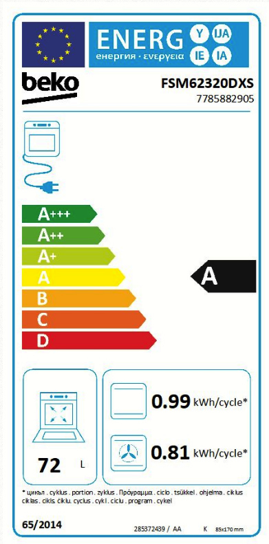 | Energieeffizienzklasse (2017/1369/EU) | E |