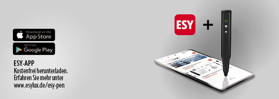 Wie bei seinen Automations- und Lichtlösungen setzt ESYLUX auch bei ESY-Pen und ESY-App auf das Prinzip der intelligenten Synergie: Sie ermöglichen die einfache Parametrierung, Fernsteuerung sowie das mobile Verwalten und Dokumentieren von Projekten bei allen fernbedienbaren Produkten und Lösungen von ESYLUX!