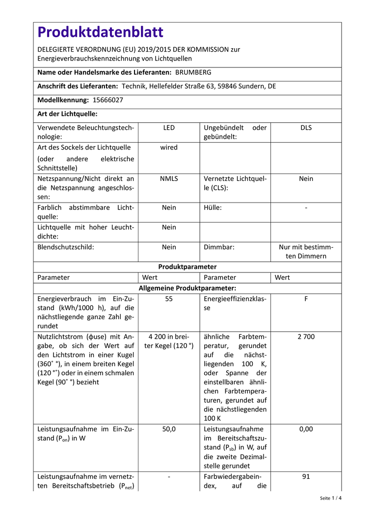 | Energieeffizienzklasse der Lichtquelle nach EU-Richtlinie 2019/2015 | F |