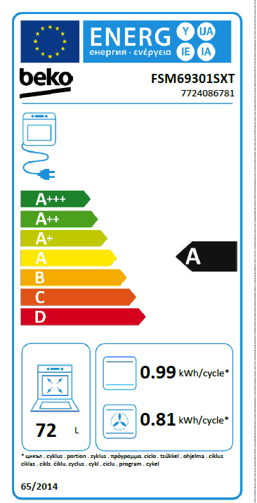| Energieverbrauch (Umluft/Heißluft) | 0.69 kWh |
