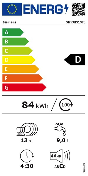 SIEMENS SR53HS74KESpüler integrierbar 45 cm