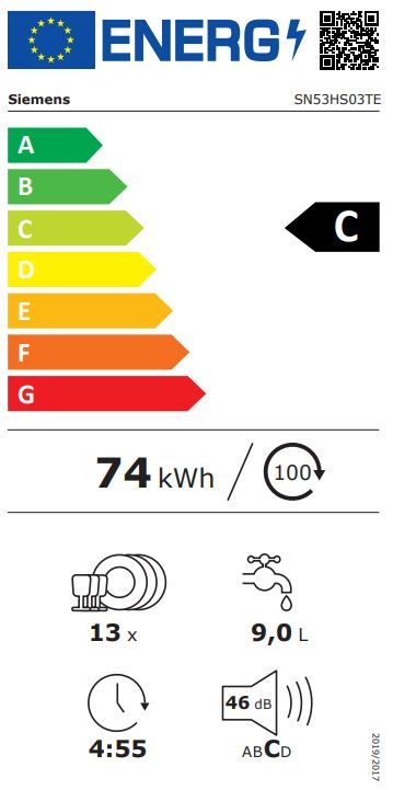 SIEMENS SR53HS74KESpüler integrierbar 45 cm